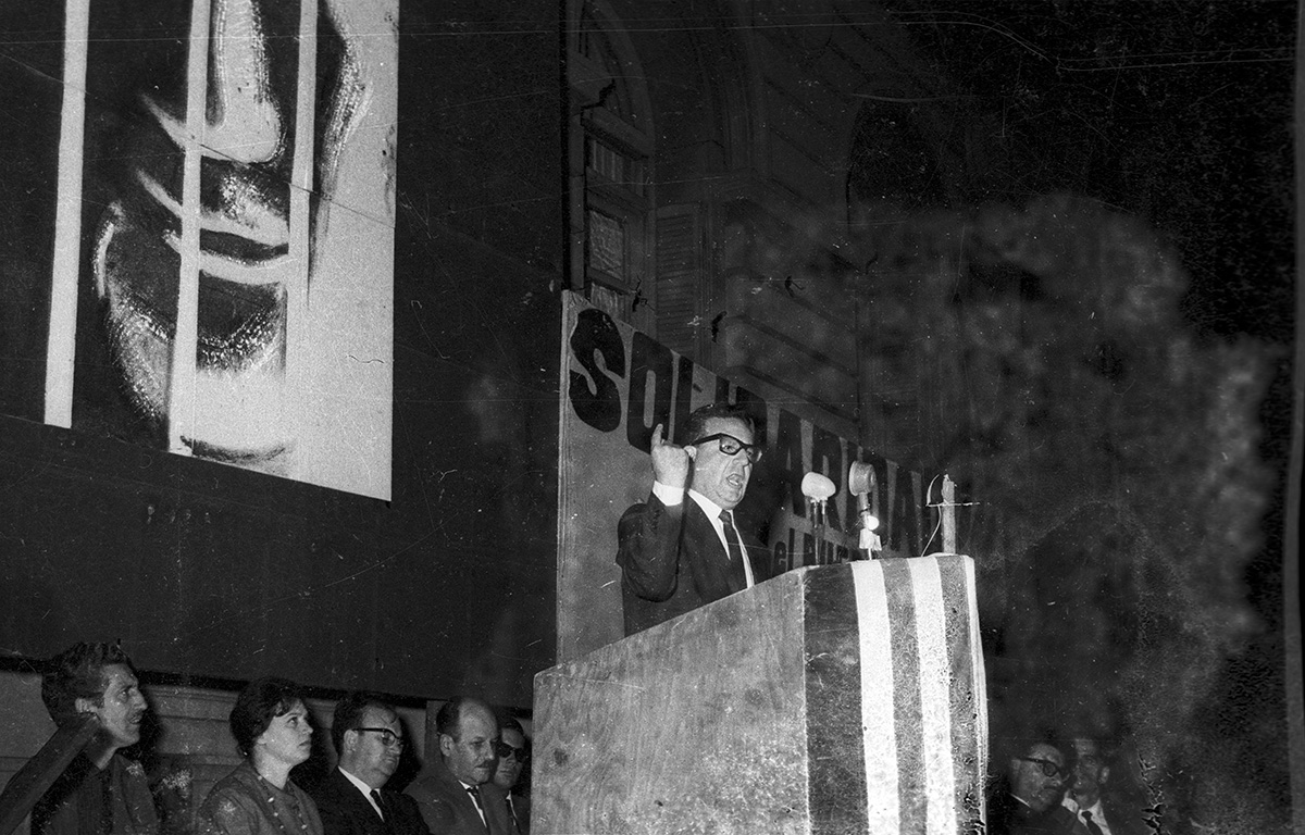 | Asunto o título atribuido(+) | Salvador Allende. Acto en repudio del golpe de Estado en Brasil y en defensa del derecho de asilo. Explanada de la Universidad de la República. |