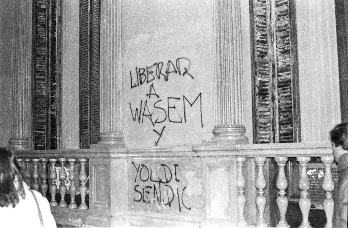 | Palabras clave(+) | Pintada , Municipio , B , CCZ , 01 , Ministerio , Relaciones Exteriores , Palacio Santos , SENDIC Raúl , Prisionero político , Terrorismo de Estado , Asociación de la Prensa Uruguaya , Censura , Dictadura , Arte efímero |