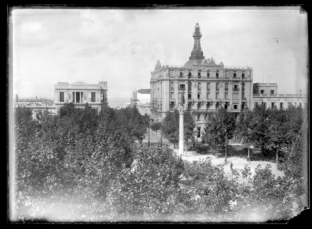 | Asunto o título atribuido(+) | Plaza Cagancha. Al centro: Columna de la Paz. Al fondo, a la izquierda: Palacio Piria. Al fondo, a la derecha: edificio de la Caja Mutual de Pensiones (posteriormente edificio de la ONDA y de la Suprema Corte de Justicia). |