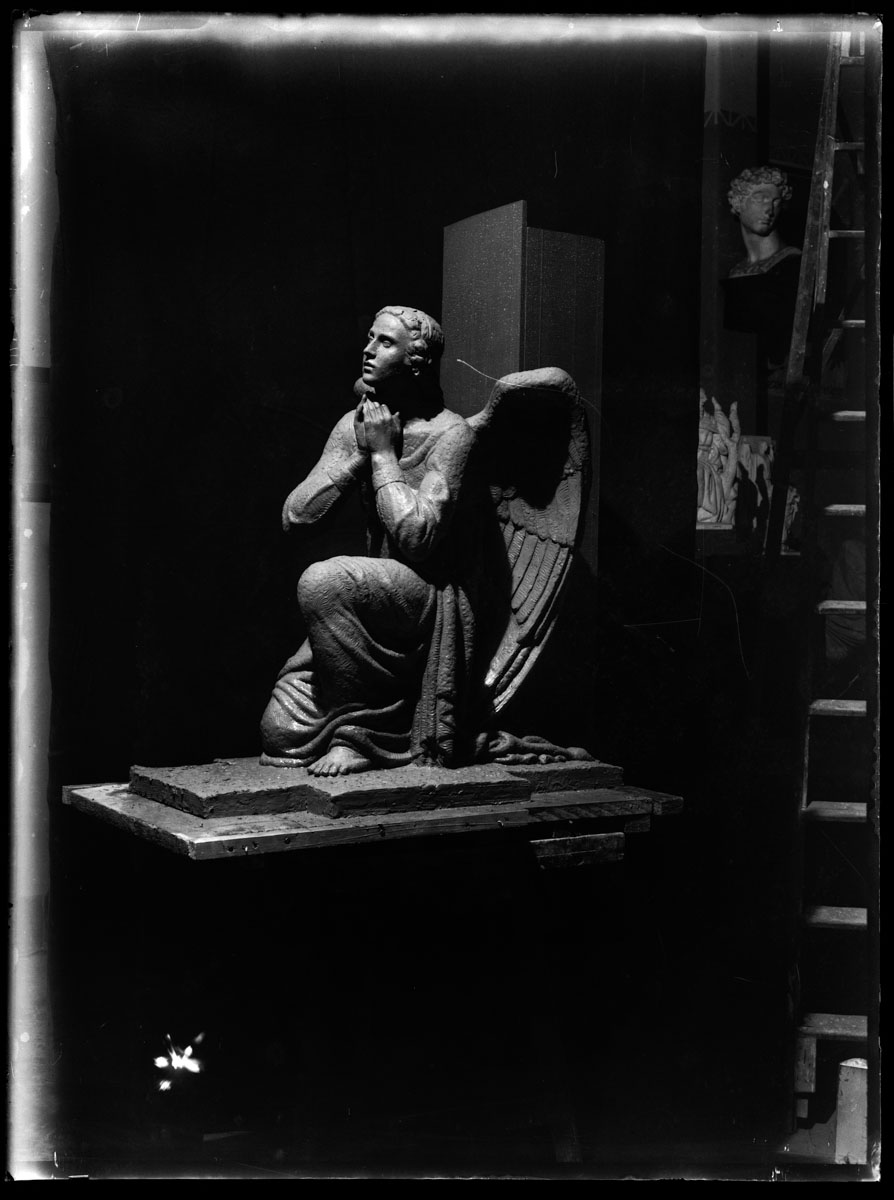 | Asunto o título atribuido(+) | Proceso de trabajo de la estatua del Ángel para la Basílica Catedral de Montevideo. Taller de José Belloni. |