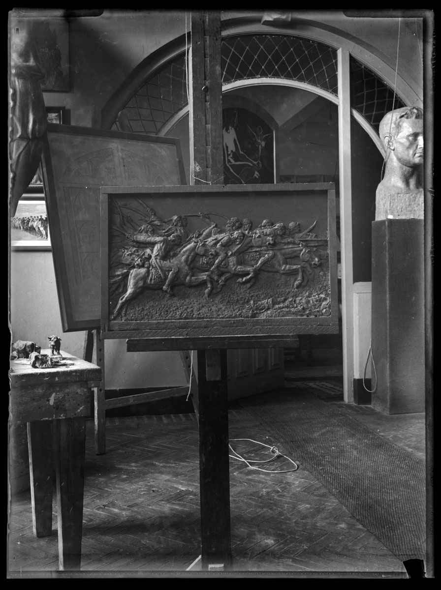| Asunto o título atribuido(+) | Proceso de trabajo de un relieve del monumento a Leonardo Olivera. Taller de José Belloni. |