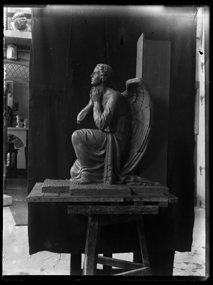 | Asunto o título atribuido(+) | Proceso de trabajo de la estatua del Ángel para la Basílica Catedral de Montevideo. Taller de José Belloni. |