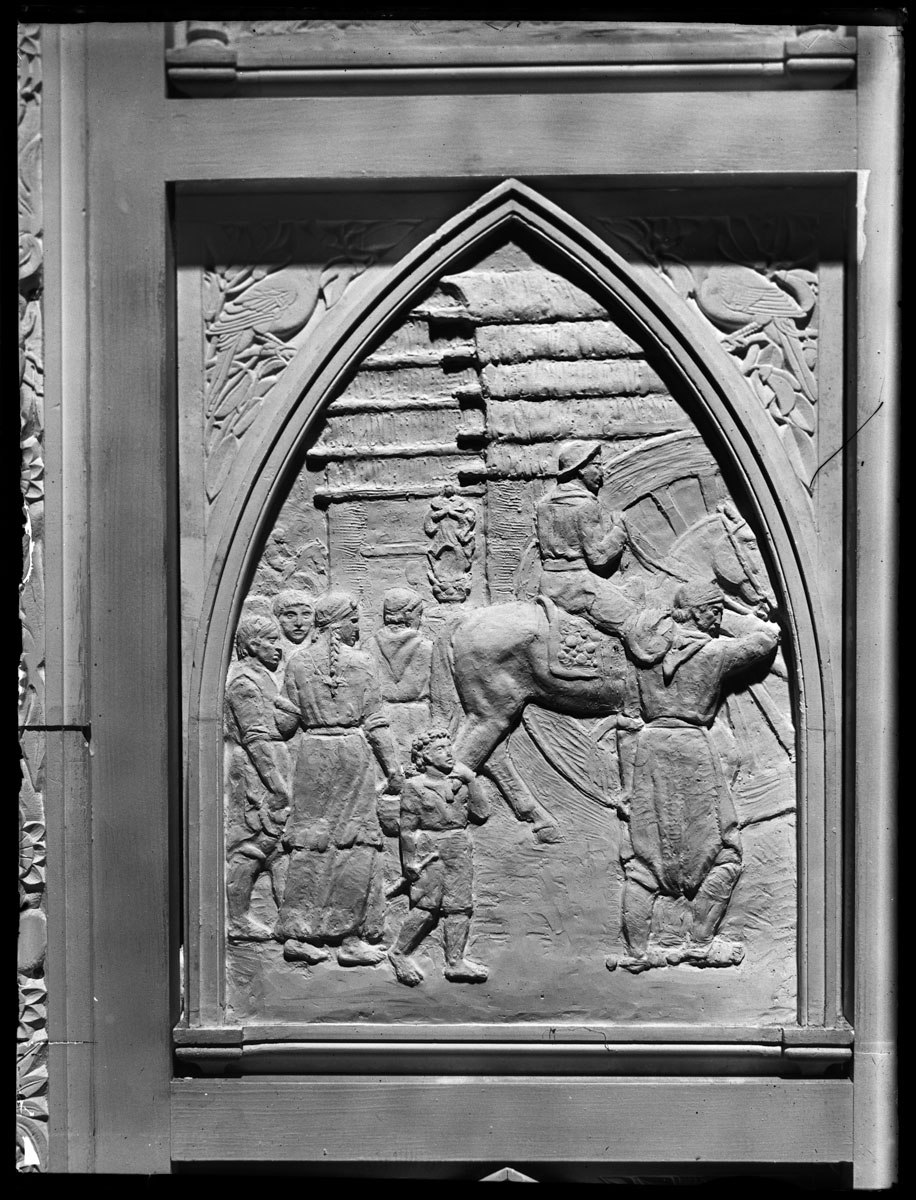 | Asunto o título atribuido(+) | Proceso de trabajo de la Puerta de la Catedral Basílica Virgen de los Treinta y Tres Orientales de Florida. Taller de José Belloni. |