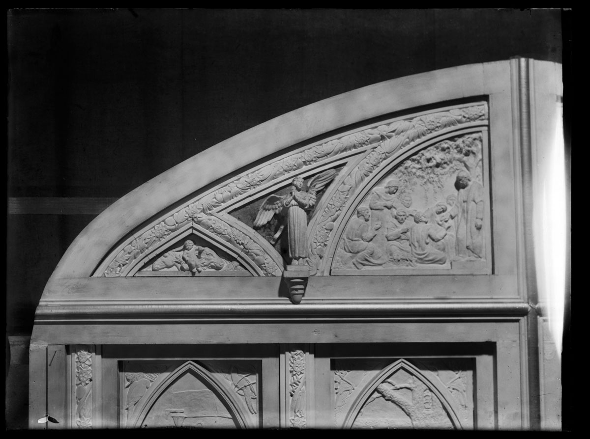 | Asunto o título atribuido(+) | Proceso de trabajo de la Puerta de la Catedral Basílica Virgen de los Treinta y Tres Orientales de Florida. Taller de José Belloni. |
