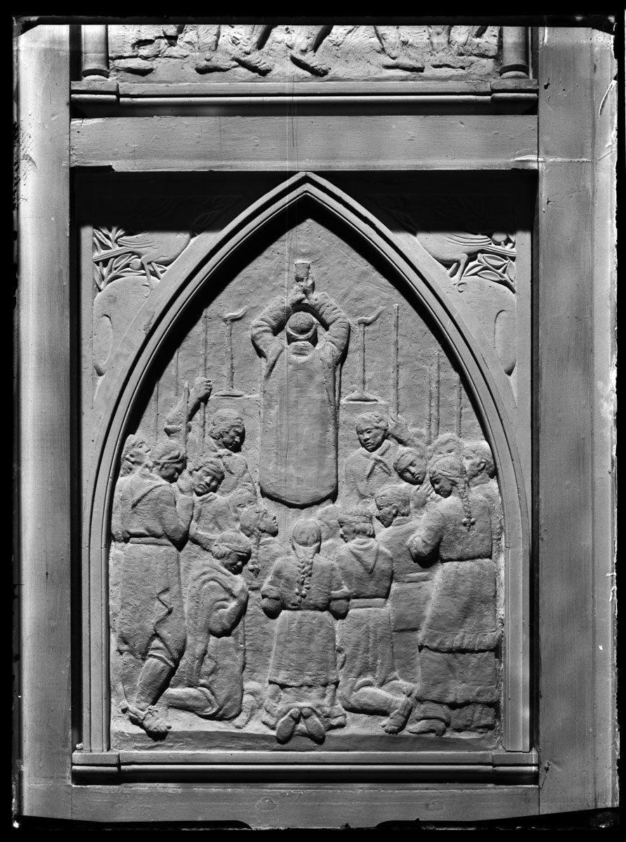 | Asunto o título atribuido(+) | Proceso de trabajo de la Puerta de la Catedral Basílica Virgen de los Treinta y Tres Orientales de Florida. Taller de José Belloni. |