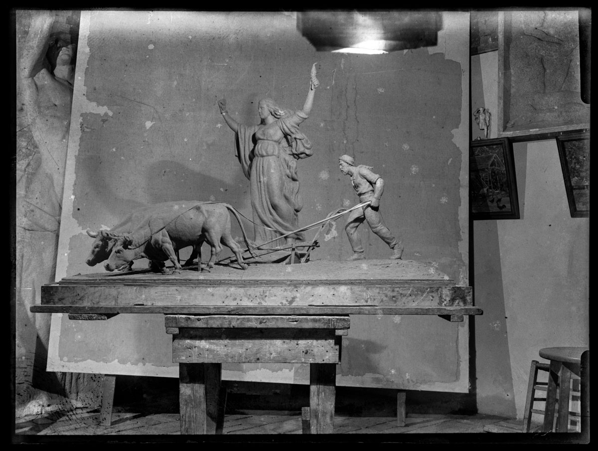 | Asunto o título atribuido(+) | Proceso de trabajo del grupo escultórico funerario en homenaje a Tomás Berreta. Taller de José Belloni. |