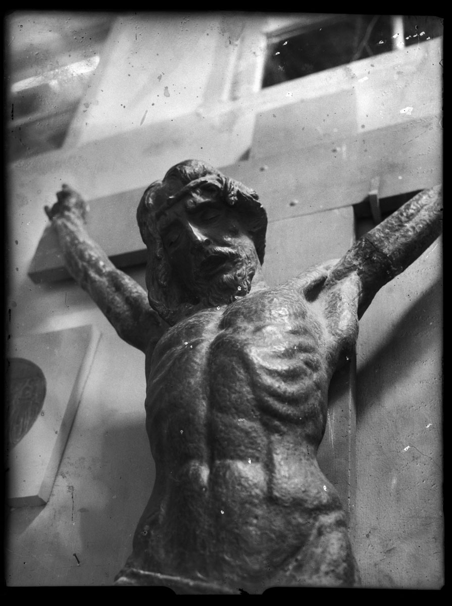 | Asunto o título atribuido(+) | Proceso de trabajo de la escultura de Cristo para el panteón de la familia Buela en el Cementerio Central. Taller de José Belloni. |