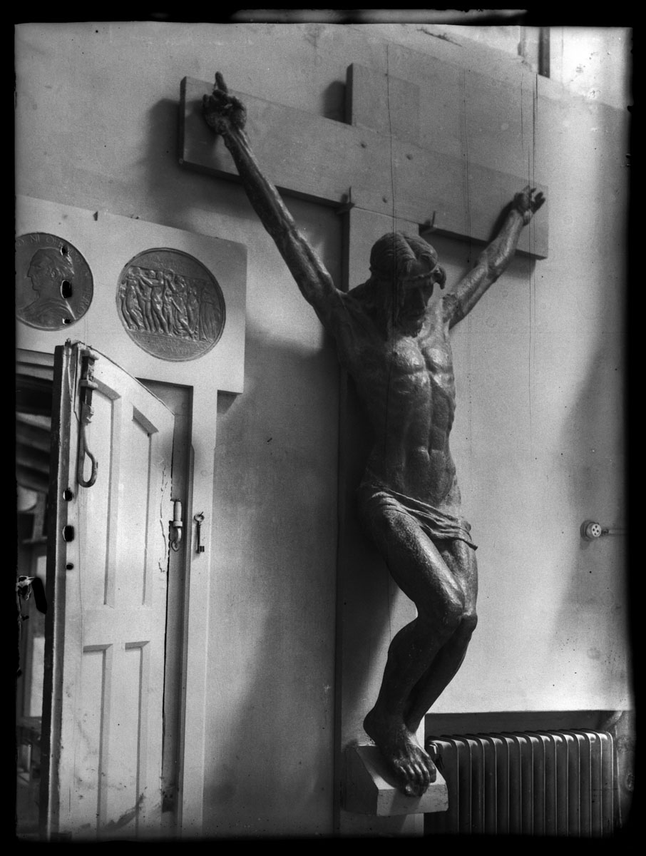 | Asunto o título atribuido(+) | Proceso de trabajo de la escultura de Cristo para el panteón de la familia Buela en el Cementerio Central. Taller de José Belloni. |