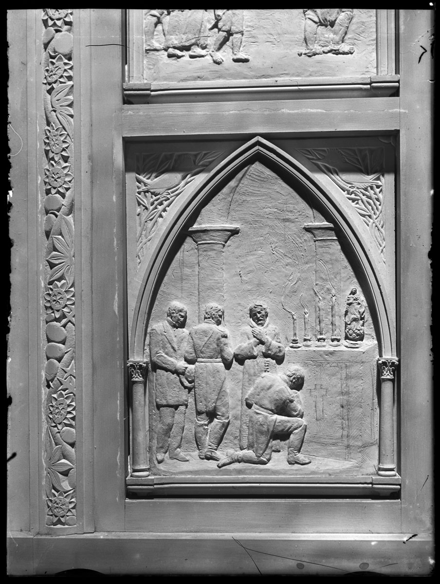 | Asunto o título atribuido(+) | Proceso de trabajo de la Puerta de la Catedral Basílica Virgen de los Treinta y Tres Orientales de Florida. Taller de José Belloni. |