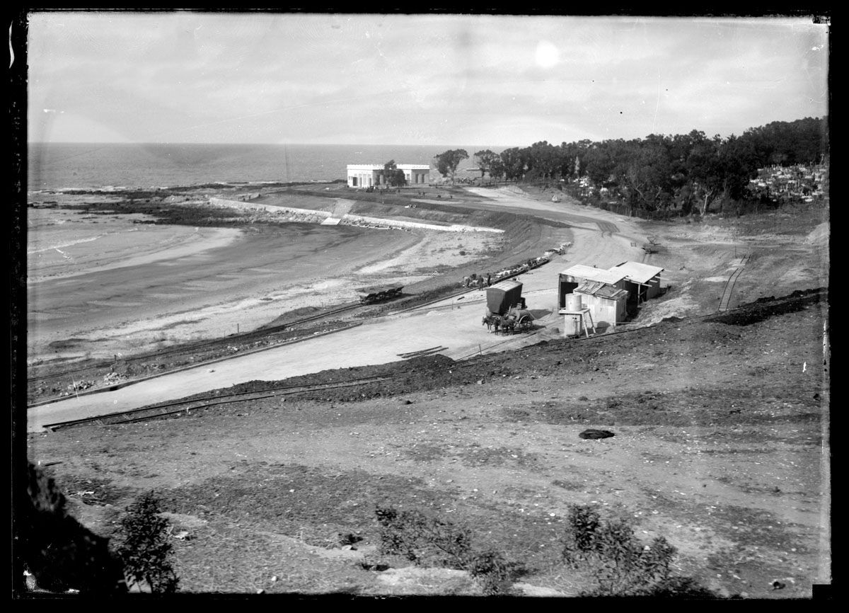 | Asunto o título atribuido(+) | Obra de construcción de la rambla República de Chile. A la izquierda: Playa Buceo. Al fondo: edificio de la morgue y cementerio del Buceo. |