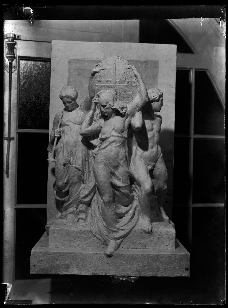 | Asunto o título atribuido(+) | Proceso de trabajo de la obra "Triunfo del escudo" para la fachada lateral del Palacio Legislativo. Taller de José Belloni. |
