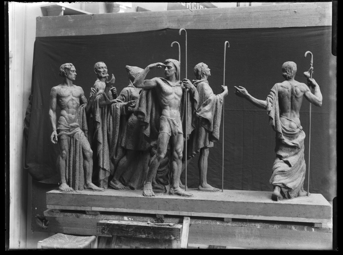 | Asunto o título atribuido(+) | Proceso de trabajo de Los seis peregrinos. Monumento a José Enrique Rodó. Taller de José Belloni. |