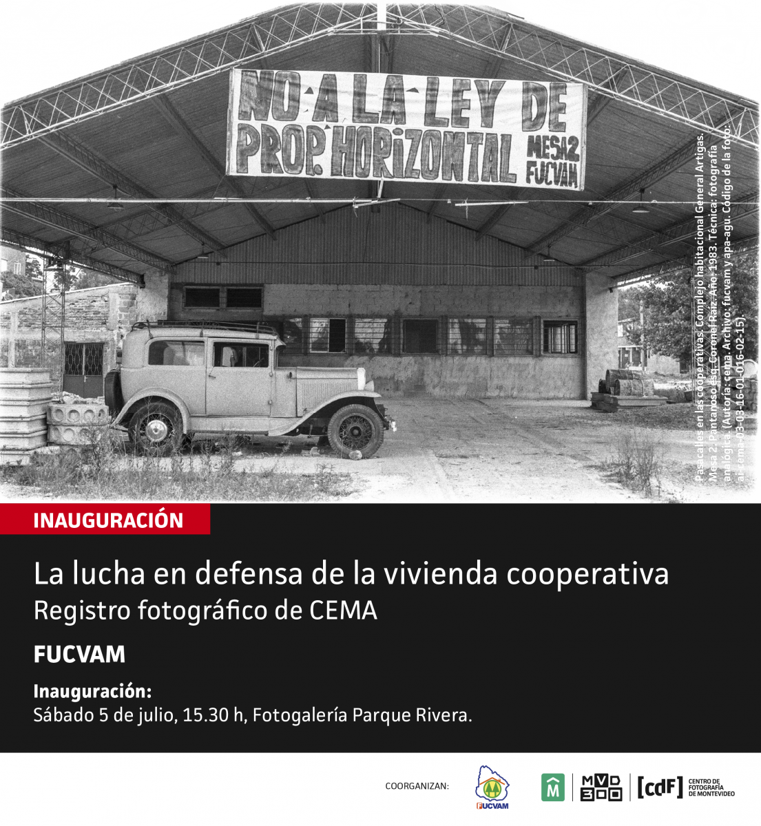 Registro fotográfico de CEMA. FUCVAM. Coincidiendo con los 55 años de FUCVAM, esta muestra recoge fotografías históricas de la Federación Uruguaya de Cooperativas por Ayuda Mutua. Inauguración: Sábado 5 de julio, 15.30 h, Fotogalería Parque Rivera. Ver más.