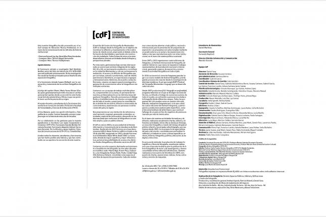 El Centro de Fotografía realiza anualmente convocatorias abiertas para editar libros y exponer muestras fotográficas en los diferentes espacios que gestiona, a partir de las propuestas de autores uruguayos y residentes en Latinoamérica. Los trabajos son elegidos por un comité de selección externo al CdF que cambia año a año.