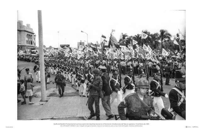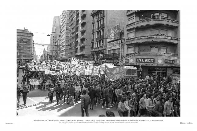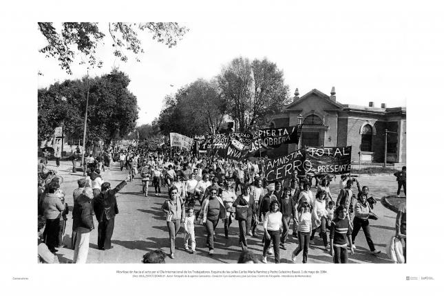 Las fotografías de Camaratres documentan el protagonismo de los movimientos sociales, la política partidaria, el desexilio, el resurgimiento del campo cultural, la salida negociada y la represión gubernamental.