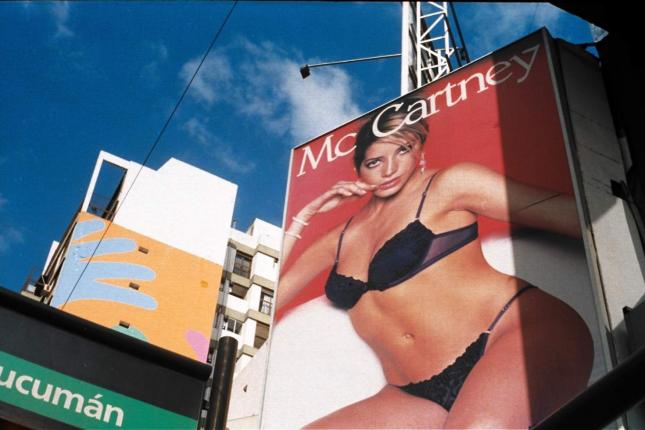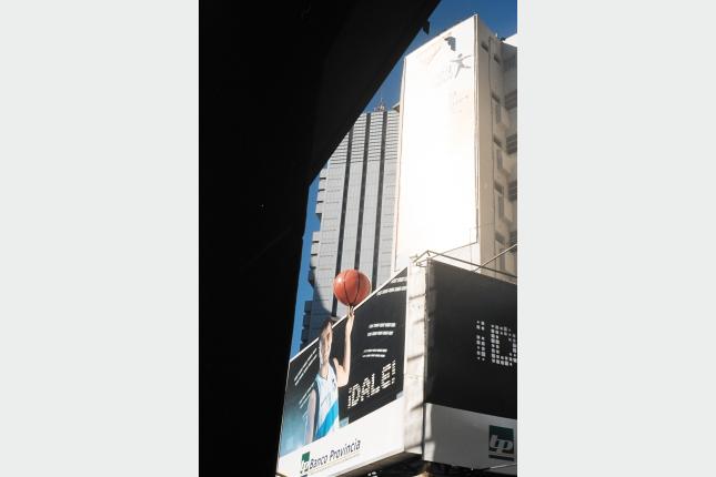 Ciudad atestada de multiplicadas imágenes que le roban presencia al cielo.