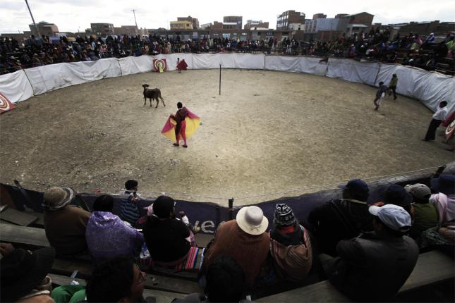 Con rostros indígenas, quemados por el sol del altiplano, aguayos y banderas le dan el toque multicolor. ¡Olé, torero!, se escucha por todas partes y se convierte en música para los elegantes toreros. Y así van llegando los vecinos de la ciudad más alta de Bolivia: El Alto.