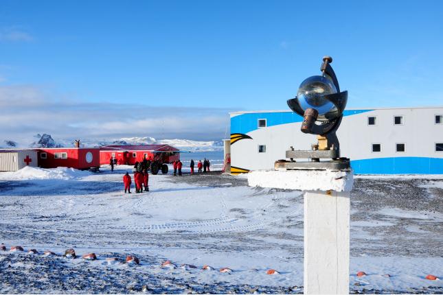 Meteorología tiene trabajo todo el año. Hay un sector dentro de la base para la medición de diferentes fenómenos climáticos. Éste es un heliógrafo, que mide las horas reales de luz solar.