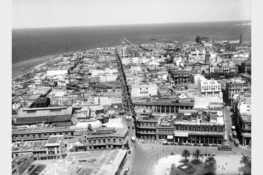 Ciudad Vieja desde la torre del Palacio Salvo. Al centro la calle Buenos Aires. 7 de diciembre de 1932. (Foto: 5844FMHGE.CMDF.IMM.UY – Autor: S.d.) Reencuadre.