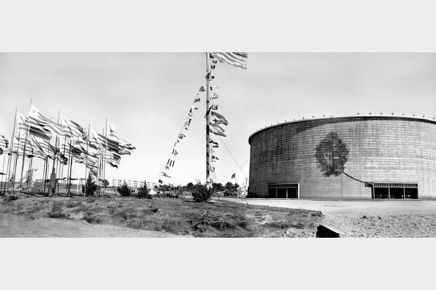 Cilindro Municipal durante la Exposición Nacional de la Producción. Barrio Mercado Modelo. Año 1956. (Foto: 9414FMCMA.CDF.IMO.UY - Autor: S.d./CdF).