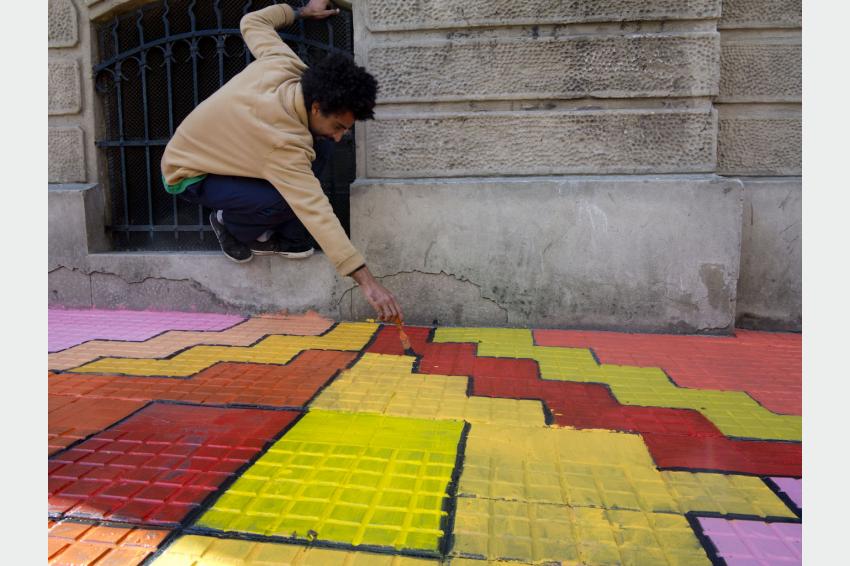Jornada Pintando Veredas. Calles Soriano esquina Salto. Barrio Cordón. 05 de mayo de 2014. (Foto: 45998FMCMA.CDF.IMO.UY - Autor: Carlos Contrera/CdF).