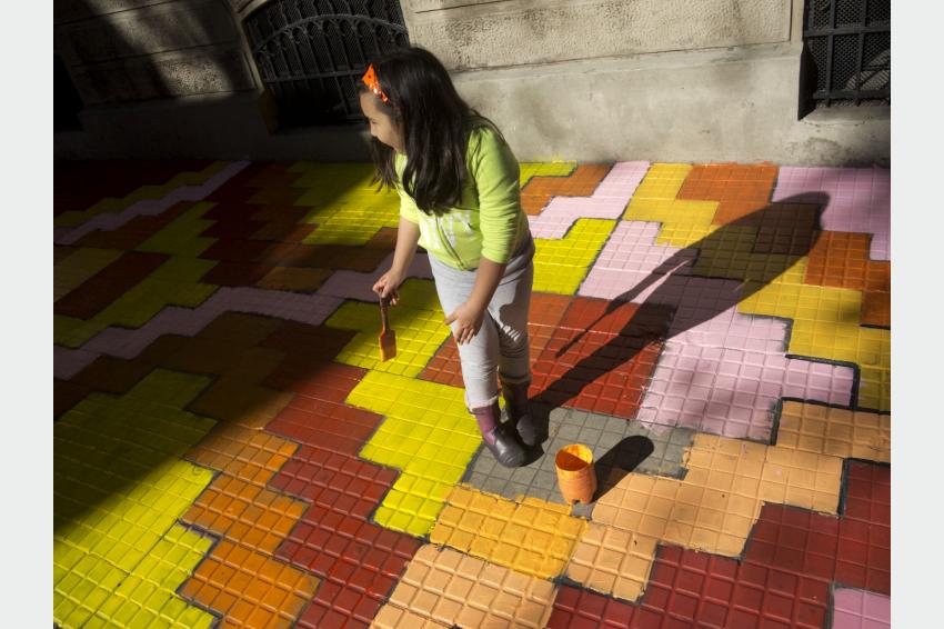 Jornada Pintando Veredas. Calles Soriano esquina Salto. Barrio Cordón. 05 de mayo de 2014. (Foto: 45992FMCMA.CDF.IMO.UY - Autor: Carlos Contrera/CdF).