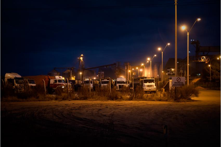 Estacionamiento de camiones terminal granelera frente al puerto de Nueva Palmira. Mayo 2014.