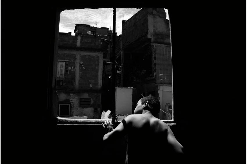 Foto: Ratão Diniz. Joven dentro de una casa que está siendo demolida para obras del Programa de Aceleración del Crecimiento (PAC) en el cerro del Alemão. Río de Janeiro, 2009