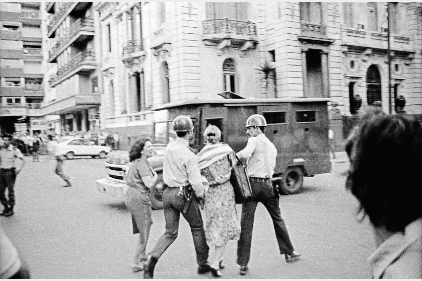 Manifestación frente al edificio de la Suprema Corte de Justicia en reclamo por la liberación de Wilson Ferreira Aldunate. Plaza de Cagancha. 14 de noviembre de 1984.