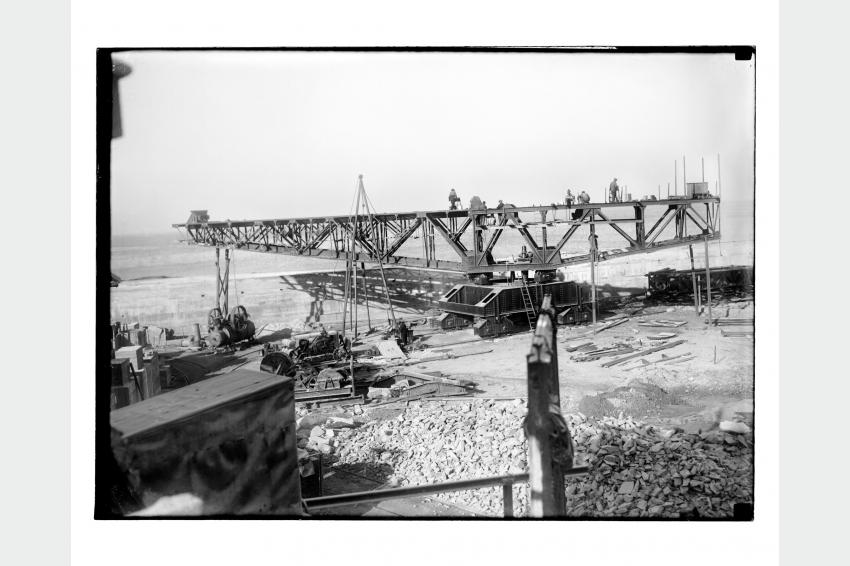 Grúa Titán. Obras de construcción de la Rambla Sur. Años 1926-1935. (Foto: 18624FMHGE.CMDF.IMM.UY - Autor: S.d./IM).
