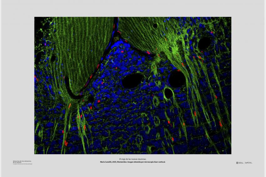 El viaje de las nuevas neuronas. María Castelló, 2015, Montevideo. Imagen obtenida por microscopía láser confocal.