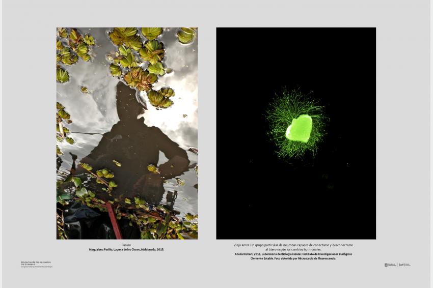 Viejo amor. Un grupo particular de neuronas capaces de conectarse y desconectarse al útero según los cambios hormonales. Analía Richeri, 2011, Laboratorio de Biología Celular. Instituto de Investigaciones Biológicas Clemente Estable. Foto obtenida por Microscopía de Fluorescencia.