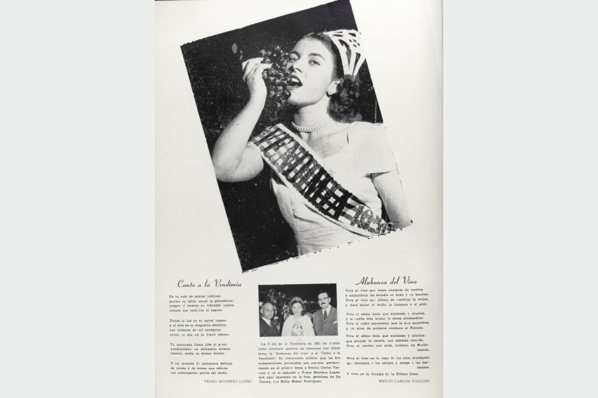 Nélida Gallo, reina de la Fiesta Nacional de la vendimia del año 1951. Revista Editorial Minas, tomo XV, número 81, mayo de 1951. Foto 433FPMC.CMDF.IMM.UY. Donación Herman Santoro.