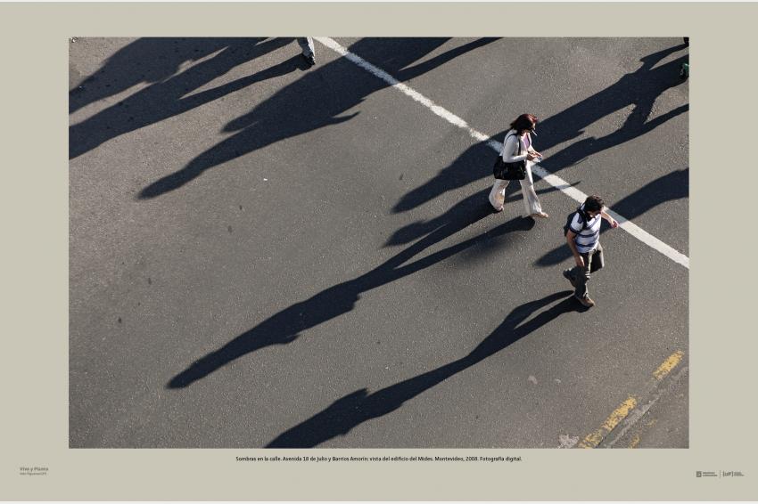 Sombras en la calle. Avenida 18 de Julio y Barrios Amorín: vista del edificio del Mides. Montevideo, 2008. Fotografía digital.