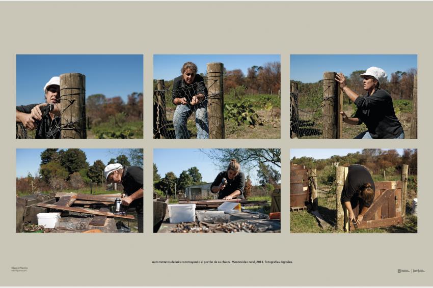 Autorretratos de Inés construyendo el portón de su chacra. Montevideo rural, 2011. Fotografías digitales.