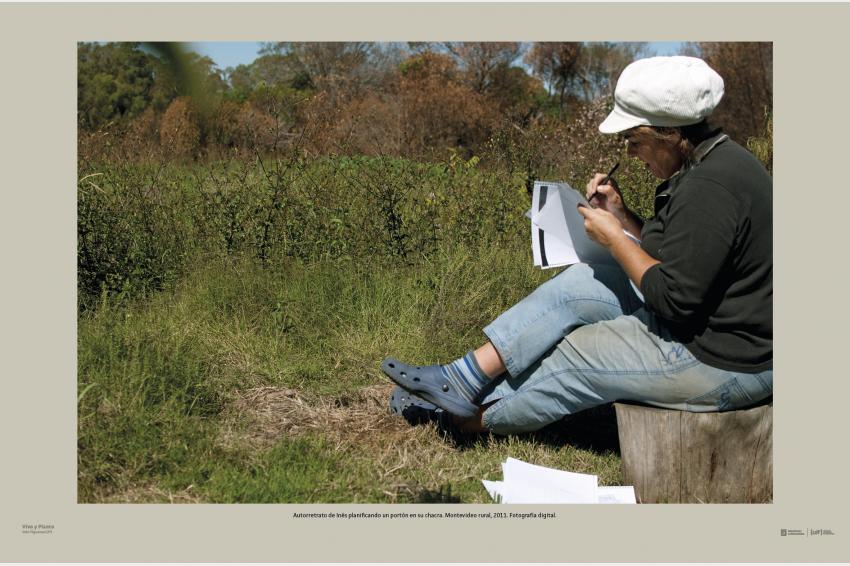 Autorretrato de Inés planificando un portón en su chacra. Montevideo rural, 2011. Fotografía digital.