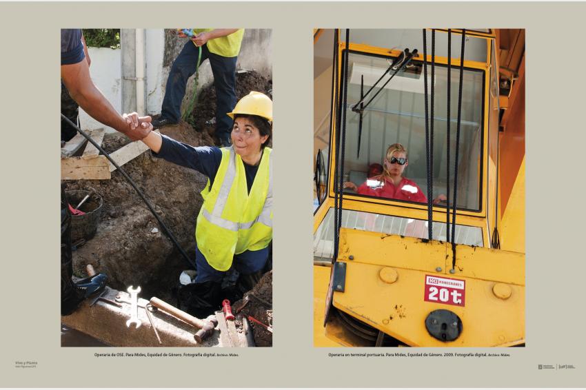 Izquierda: Operaria de OSE. Para Mides, Equidad de Género. Fotografía digital. Archivo: Mides. / Derecha: Operaria en terminal portuaria. Para Mides, Equidad de Género. 2009. Fotografía digital. Archivo: Mides.