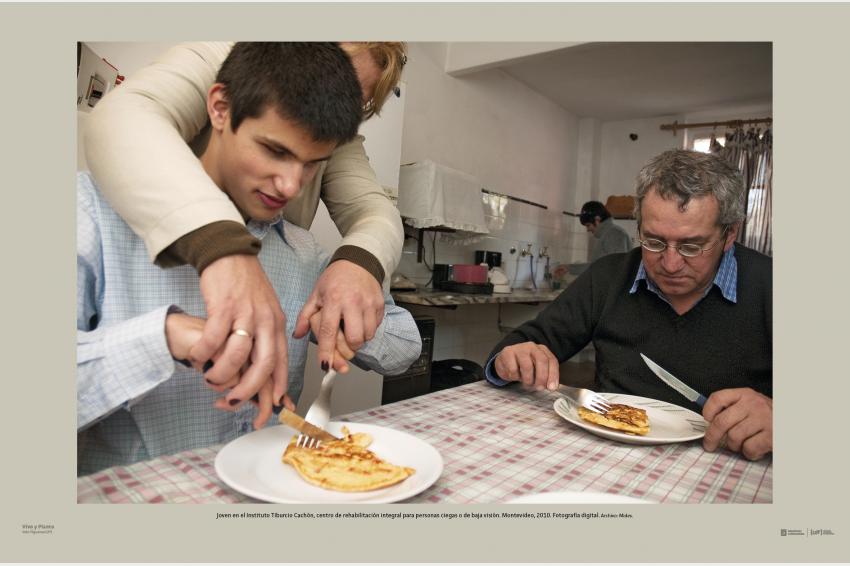 Joven en el Instituto Tiburcio Cachón, centro de rehabilitación integral para personas ciegas o de baja visión. Montevideo, 2010. Fotografía digital. Archivo: Mides.