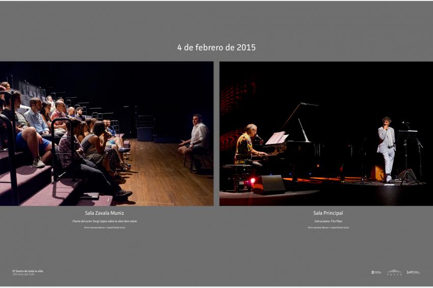 Izquierda: Sala Zavala Muniz. Charla del actor Sergi López sobre la obra Non solum. (Foto: Santiago Bouzas - Ciddae/Teatro Solís) / Derecha: Sala Principal. Solo al piano, Fito Páez. (Foto: Santiago Bouzas - Ciddae/Teatro Solís)