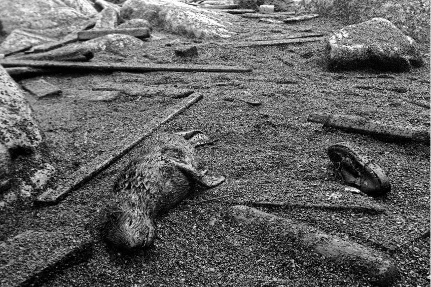 Desastre ecológico en la isla de Lobos a causa de un derrame de petróleo. Foto: OSCAR BONILLA – 1987.