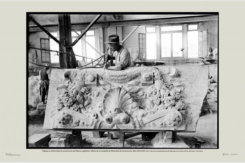 Trabajos en mármol para la construcción del Palacio Legislativo. Talleres de la Compañía de Materiales de Construcción. Años 1915-1925. (Foto: Colección Compañía Nacional de Materiales de Construcción No. 248. Autor: S.d./Sodre).