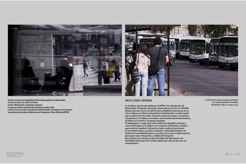 Latinoamérica. / Izquierda: Nombre: Encuesta de Movilidad del Área Metropolitana de Montevideo. Período de ejecución: 2016 a la fecha. Ámbito: Montevideo, Canelones y San José. Cooperante: Banco de Desarrollo de América Latina (CAF). Instituciones nacionales: Intendencia de Montevideo, Intendencia de Canelones, Intendencia de San José y Ministerio de Transporte y Obras Públicas (MTOP) / La información relevada incluye el propósito