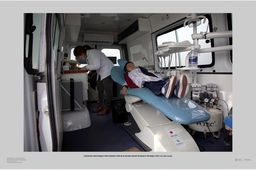 Consultorio odontológico móvil atiende a niño de la escuela Sarandí de Navarro. Río Negro, 2016. Foto: Pablo La Rosa.