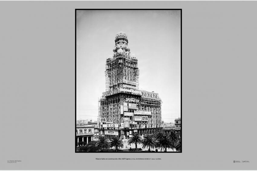 Palacio Salvo en construcción. Año 1927 (aprox.). (Foto: 04353FMHGE.CDF.IMO.UY - Autor: S.d./IMO).