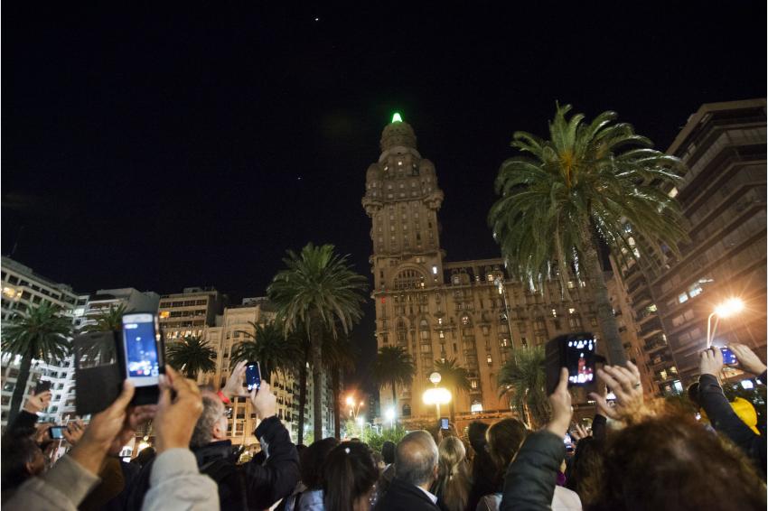 Inauguración de la luminaria del Palacio Salvo. 28 de abril de 2017. (Foto: 66378FMCMA.CDF.IMO.UY - Autor: Carlos Contrera/CdF).