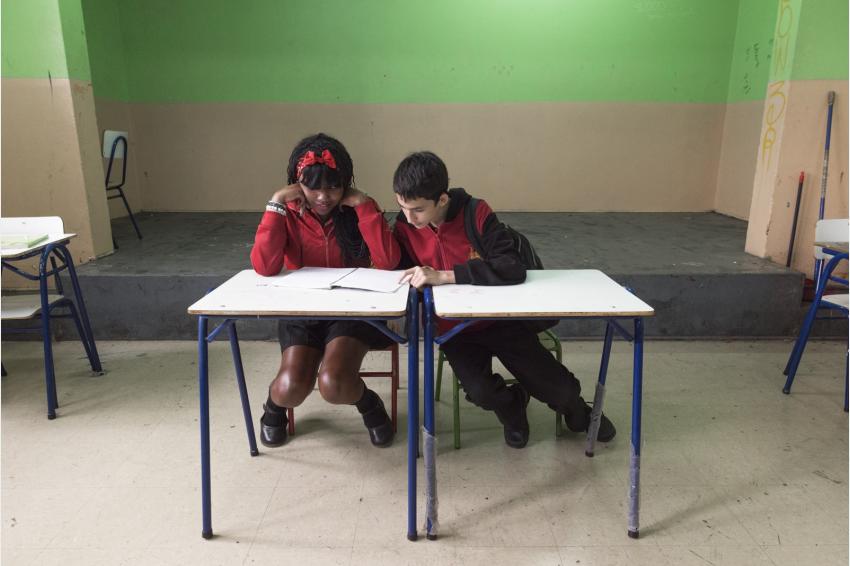 Estudiantes en el Liceo de Hombres de Antofagasta; uno de cada tres estudiantes es migrante.