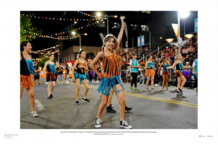 Escuela de Samba Marcirio Amaro en el Desfile de Escuelas de Samba. Avenida 18 de Julio. Desde la Plaza Independencia hasta la calle Paraguay. 26 de enero de 2018. Autor: Agustín Fernández Gabard.