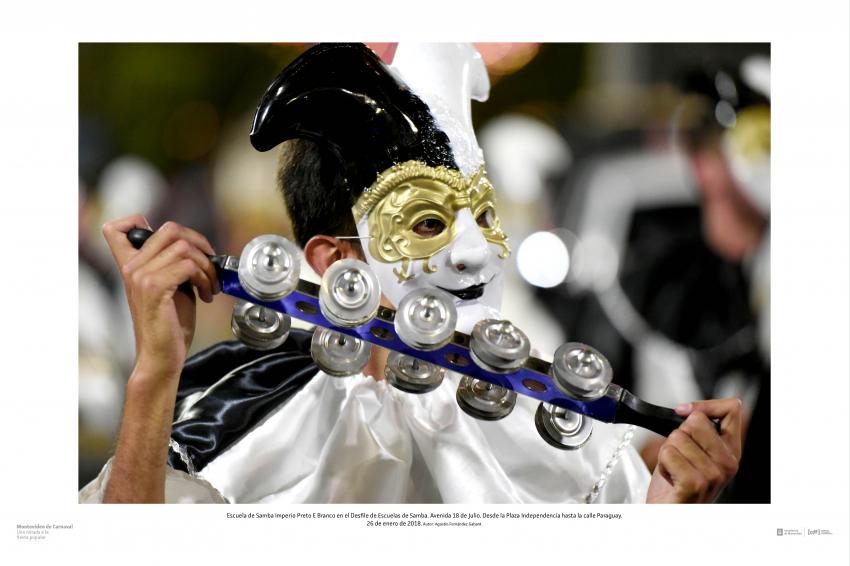 Escuela de Samba Imperio Preto E Branco en el Desfile de Escuelas de Samba. Avenida 18 de Julio. Desde la Plaza Independencia hasta la calle Paraguay. 26 de enero de 2018. Autor: Agustín Fernández Gabard.