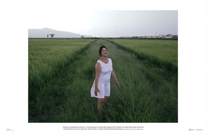 Fátima en una plantación de arroz. “La fuerza que por el verde tallo impulsa la flor/ Impulsa mis verdes años; la que marchita la raíz del árbol/ Es la que me destruye.” Dylan Thomas, en el libro Unquiet Mind de Kay Jamison. Itajaí, Brasil. Enero, 2018. Foto: Isabella Lanave.