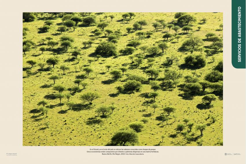 En el litoral y en el este del país se ubican las sabanas conocidas como bosque de parque. Estos ecosistemas están compuestos por árboles o palmeras dispersas en una matriz herbácea. Nuevo Berlín, Río Negro, 2010. Foto: Marcelo Casacuberta